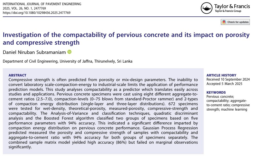 Professor in Civil Engineering attached to Department of Civil Engineering, University of Jaffna